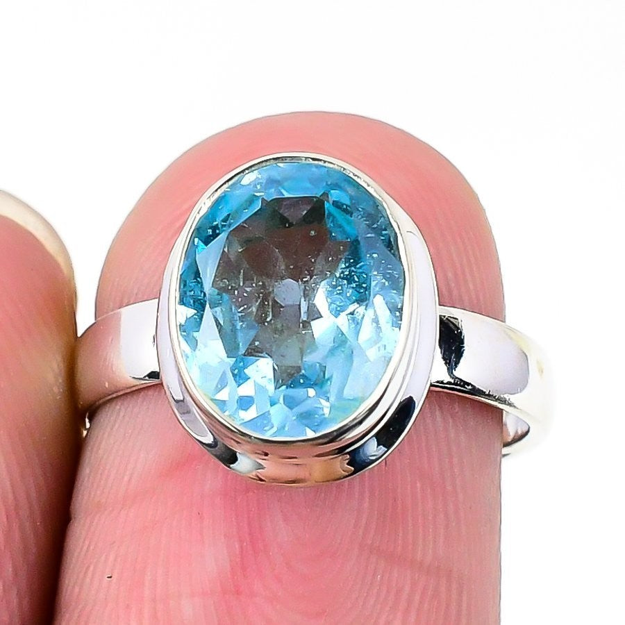 Swiss Blue Topaz Stone Trendy Boho Statement Mother Ring Jewelry 925 Silver US 7