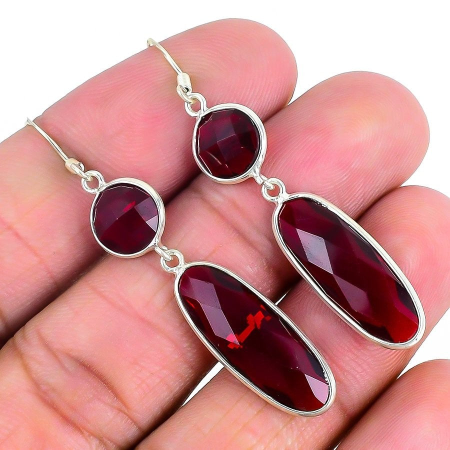 Garnet treated Stone Birthday Wedding Drop Dangle Daughter Earrings Solid Silver