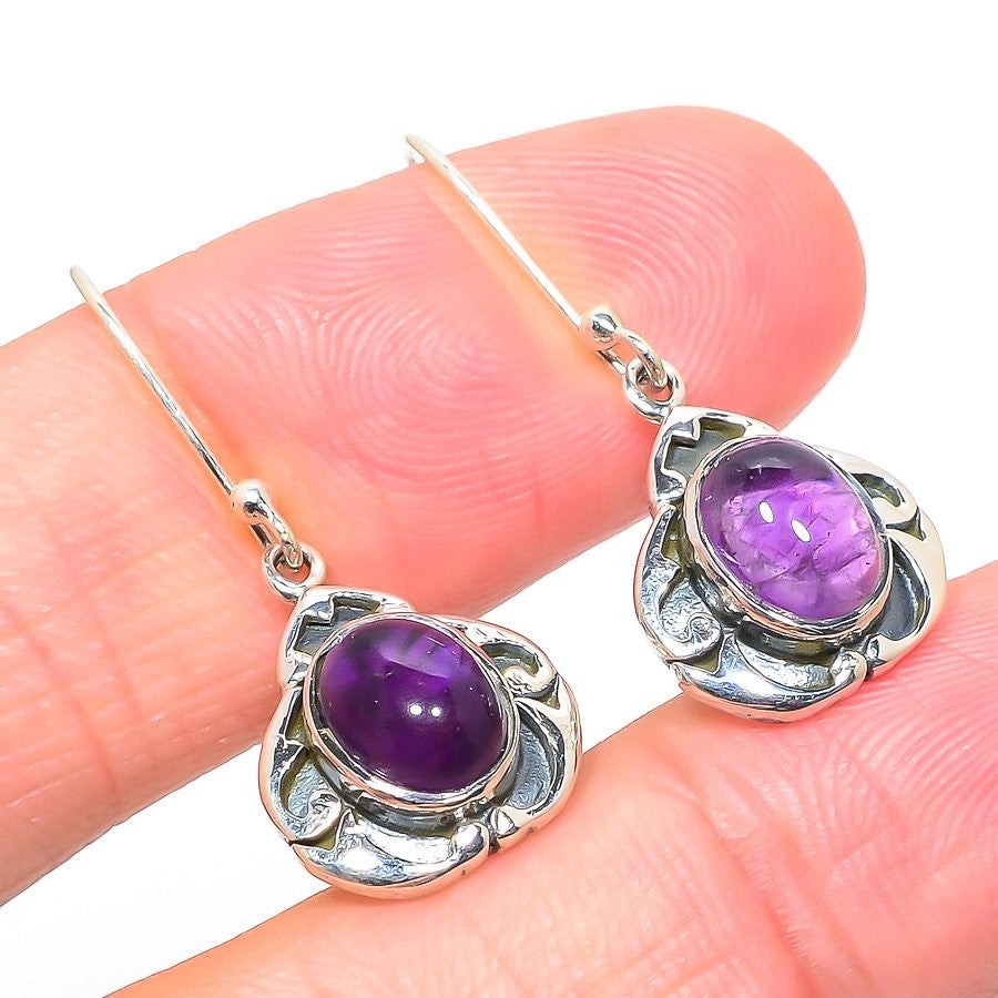 Natural Sage Amethyst Sterling Silver Drop Daughter Handcrafted Earrings Jewelry