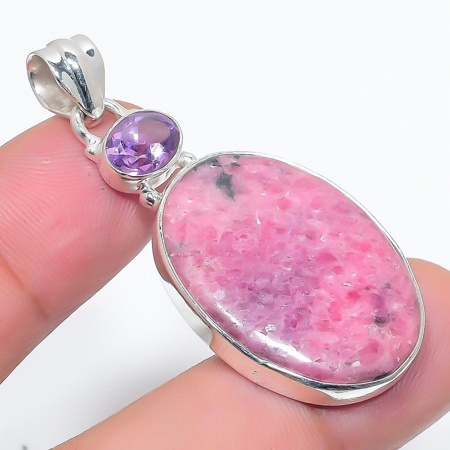Rhodonite Gemstone 925Ā SolidĀ Silver Best Daughters Gift Engagement Boho Pendant