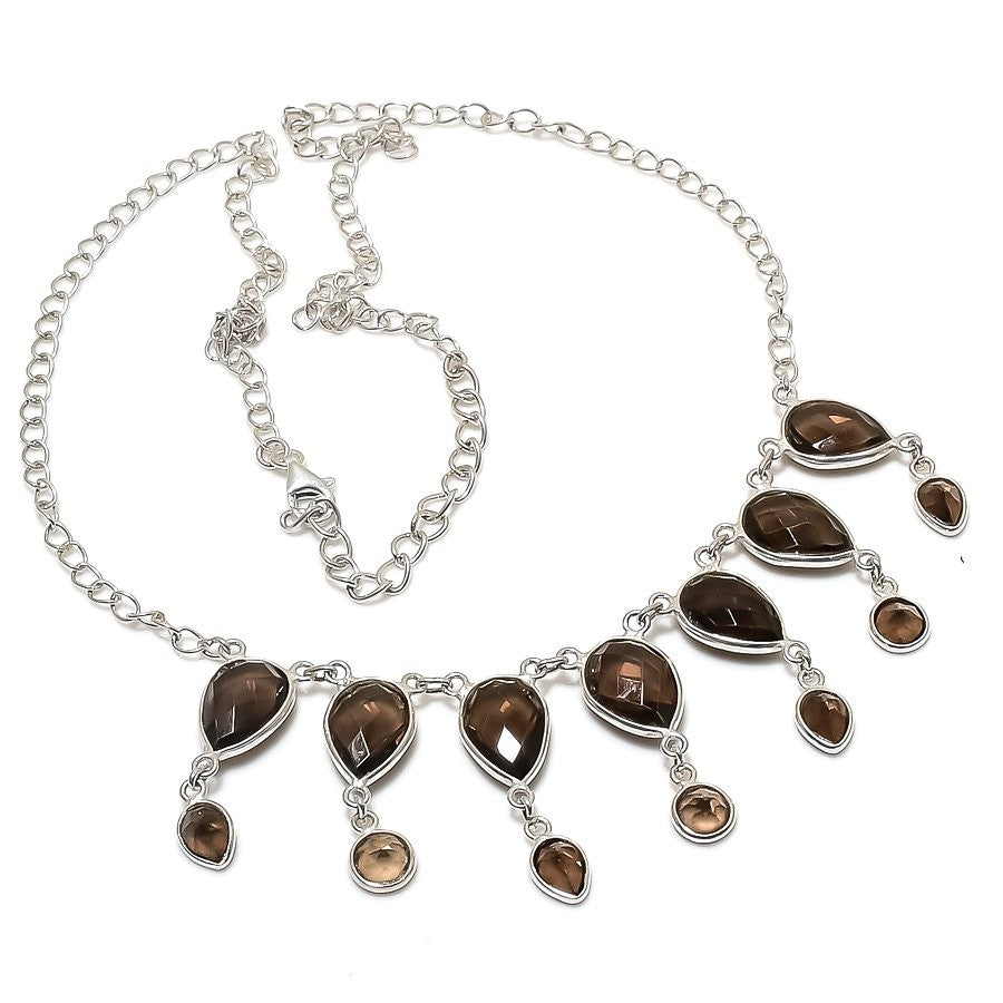 Natural Smoky Topaz 925 Silver Chain Anniversary Art Deco Engagement Necklace