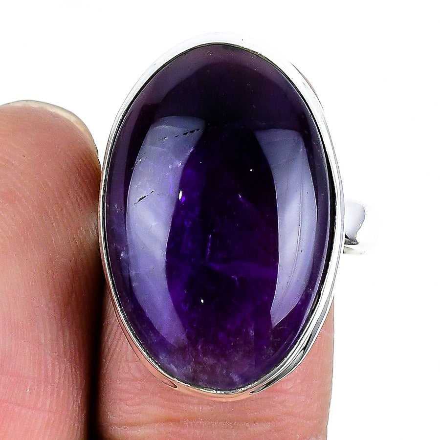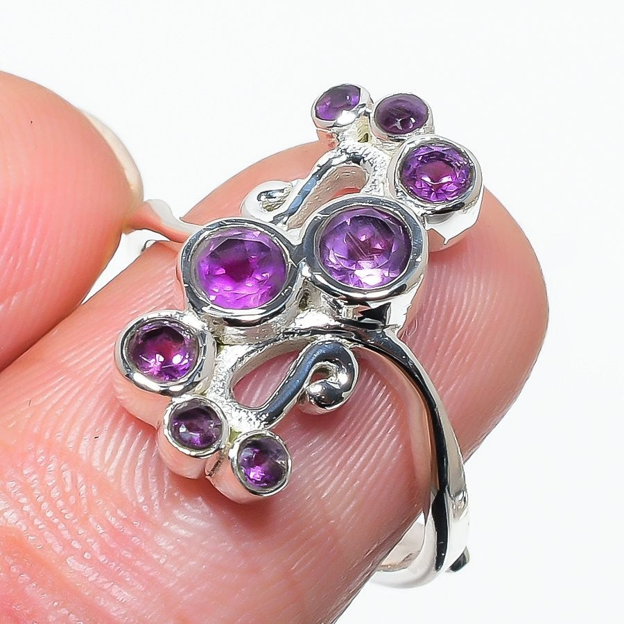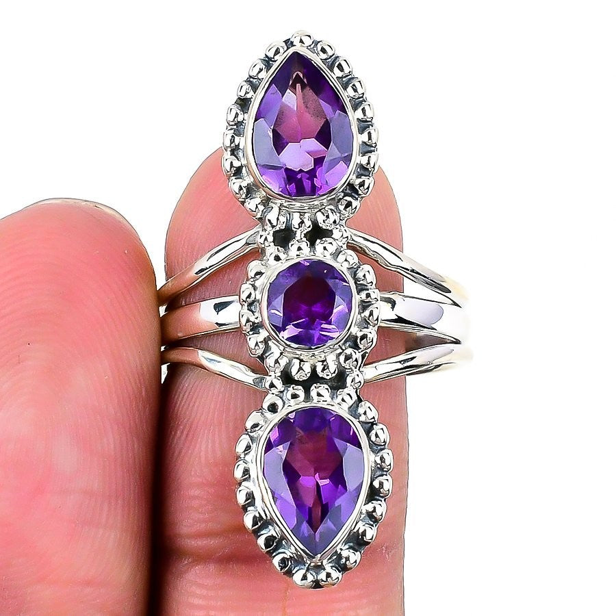 Natural Amethyst 925 Sterling Silver Ethnic Wife Statement Ring Jewelry Size 10