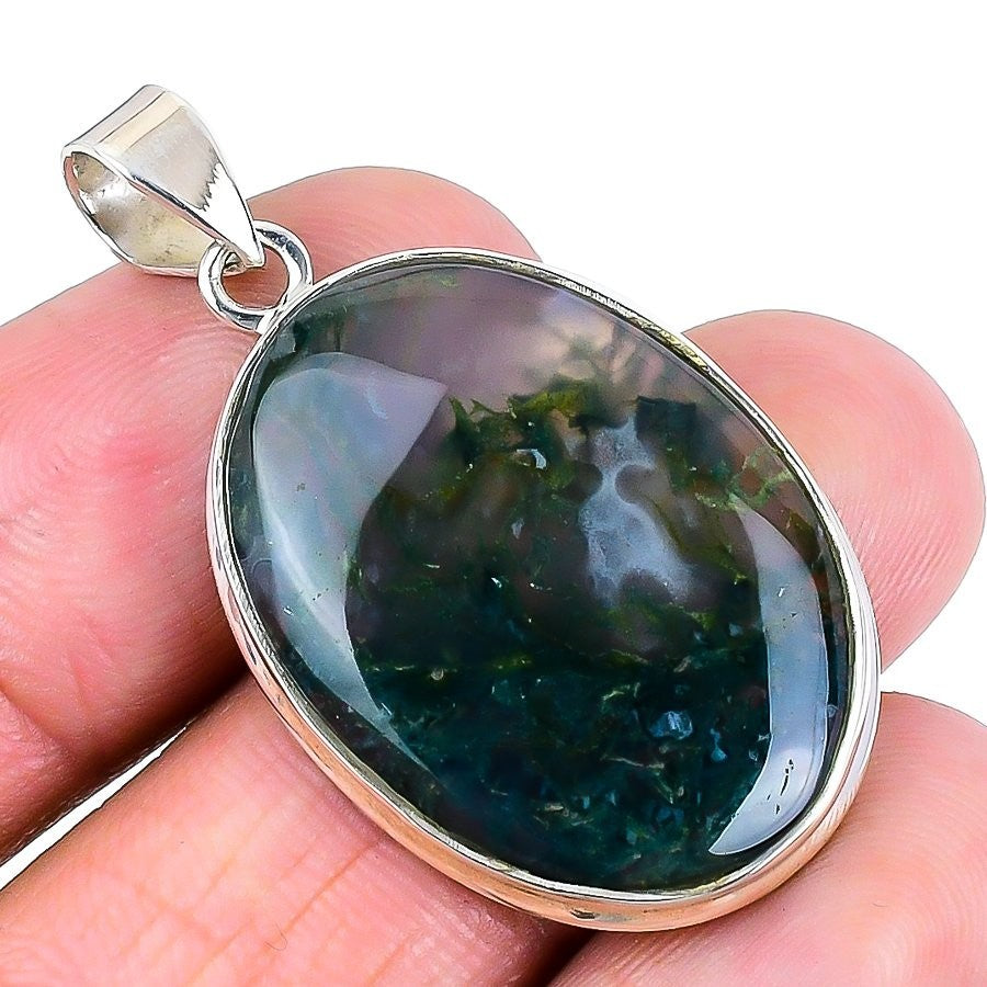 Moss Agate Stone 925 Sterling Silver Sister Engagement Birthday Pendant Jewelry