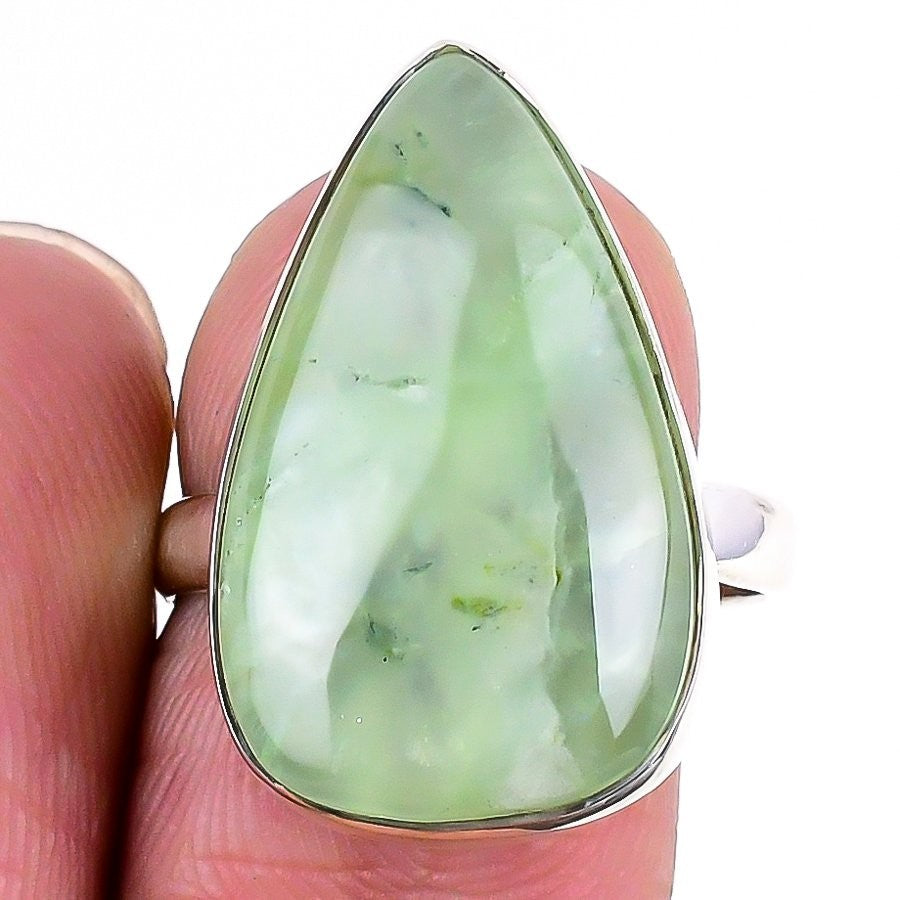 Natural Prehnite Channel Set Art Deco Statement Handmade Ring Jewelry 925 Silver