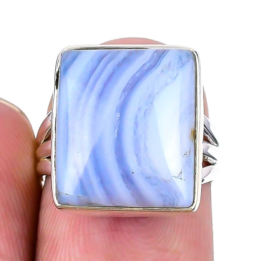 Daughters Day Deal Blue Lace Agate Stone Sterling Silver Statement Ring Size 6