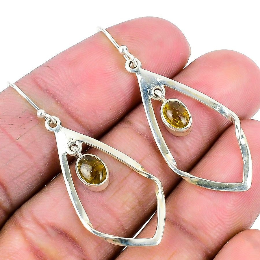 Baltic Amber Stone 925 Sterling Silver Engagement Wedding Drop Hook New Earrings