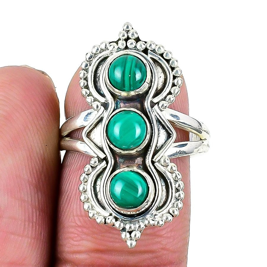 Heart Chakra Malachite Stone Sterling Silver Statement Daughters Day Ring US 8