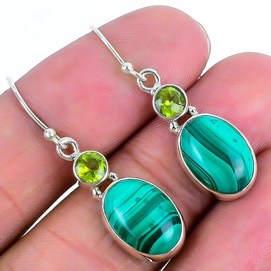 Malachite Stone Birthday Dangle Drop Daughter Gift Wife Earrings Sterling Silver