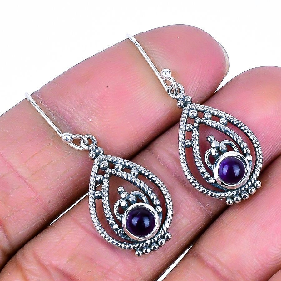 Sage Amethyst Stone Solid Sterling Silver Artisan Dangling Wife Earrings Jewelry