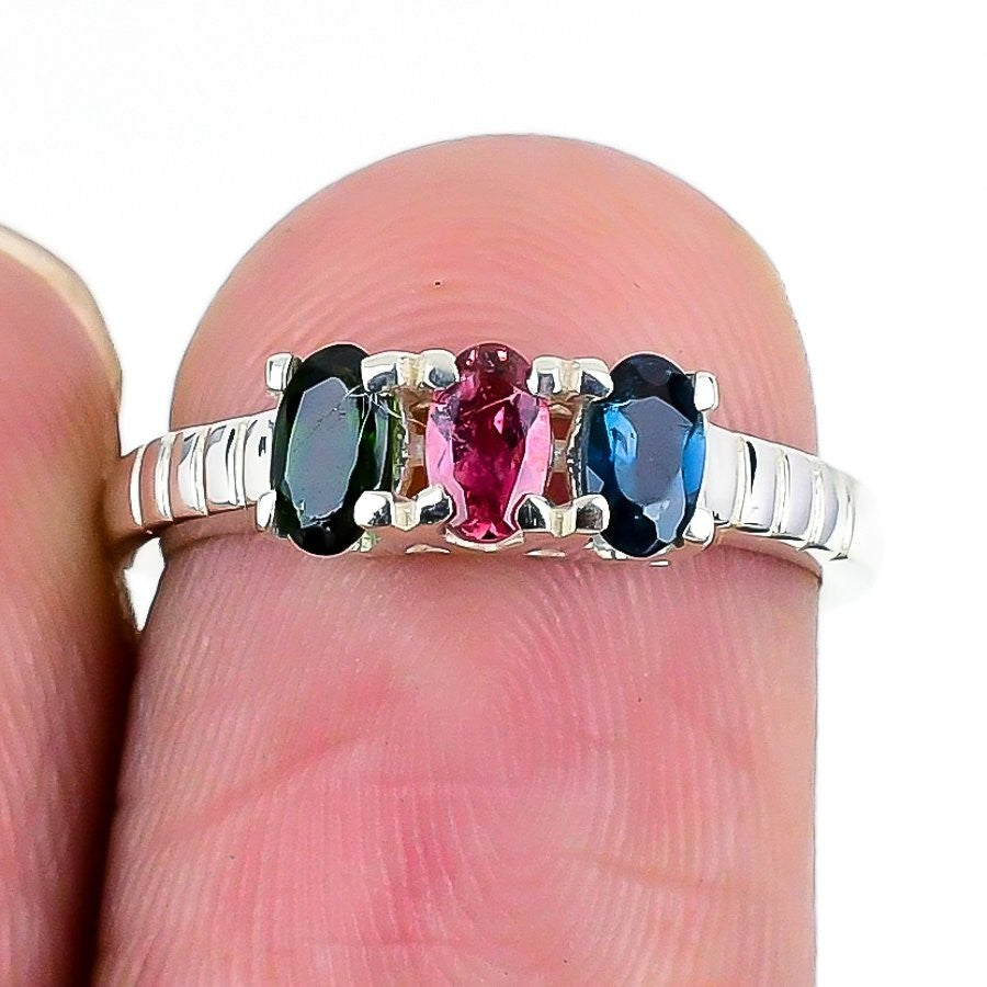 Tourmaline Gemstone Solid Silver Boho Statement Handcrafted Ring Jewelry US 5.5