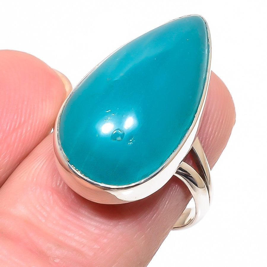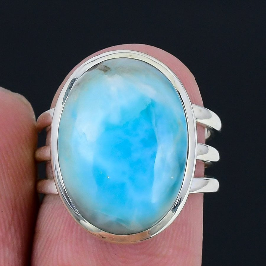 Natural Republic Larimar Solid Silver Statement Daughter Art Deco Ring US 6.5