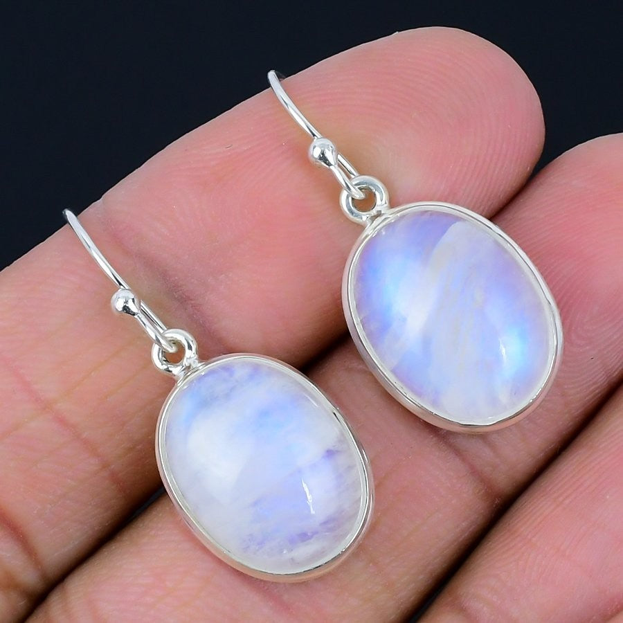 Rainbow Moonstone Stone Solid Silver Daughter Elegant Drop Dangle Hook Earrings