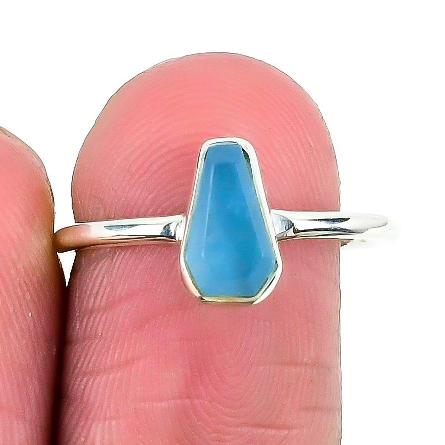 Blue Lace Agate Stone 925 Sterling Silver Statement Wedding Ring Jewelry Size 6