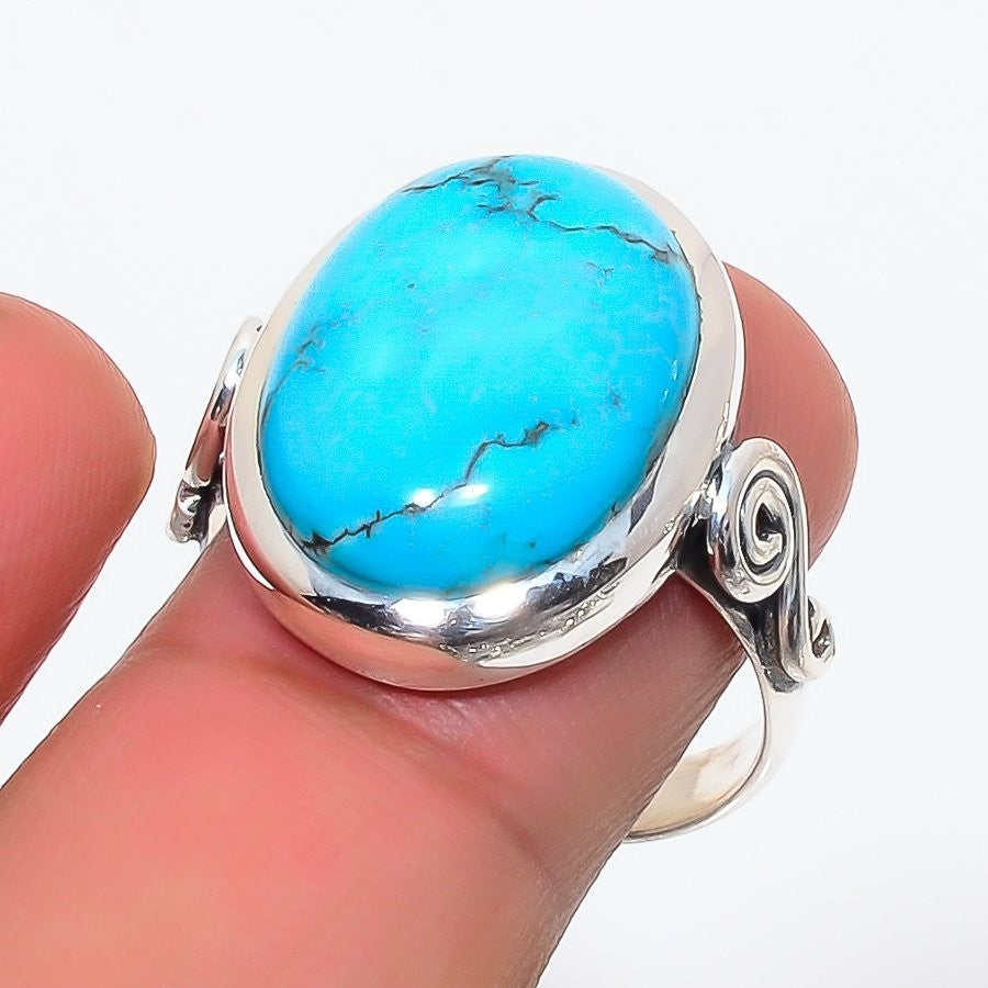 Blue Turquoise Stone Handmade Cluster Ring Jewelry Size 8.5 925 Sterling Silver