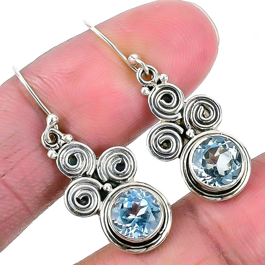 Aquamarine Gemstone Solid Silver Trendy Dangle Handmade Hook Daughter Earrings