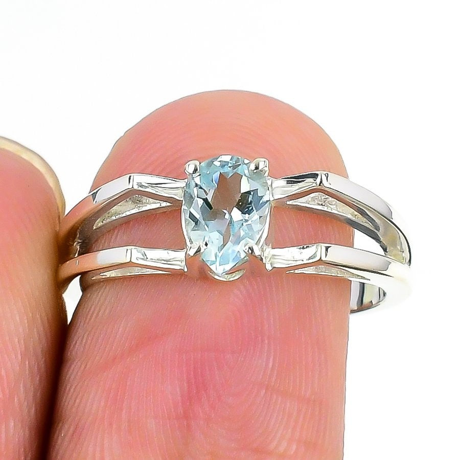 Natural Aquamarine Sterling Silver March Wife Statement Daughter Gift Ring US 8