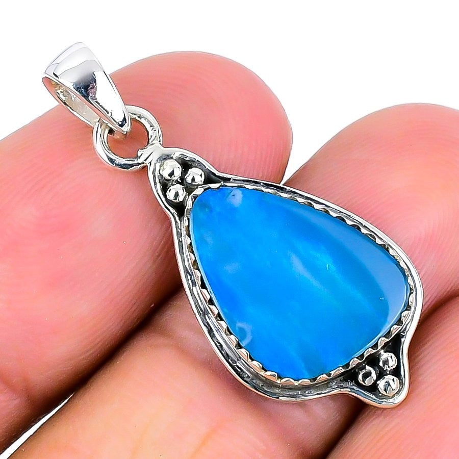 Copper Blue Turquoise Gemstone 925 Silver Bezel Unique Daughter December Pendant