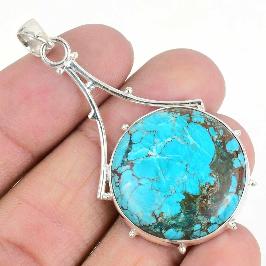 Daughters Day Deal Tibetan Turquoise Gemstone 925Ā SolidĀ Silver Boho New Pendant
