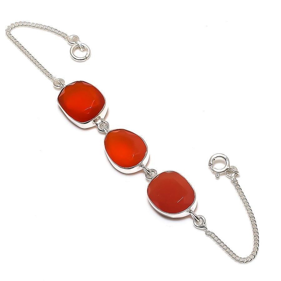 Red Carnelian Stone Ethnic Chain Engagement Bracelet Jewelry 925Ā SolidĀ Silver