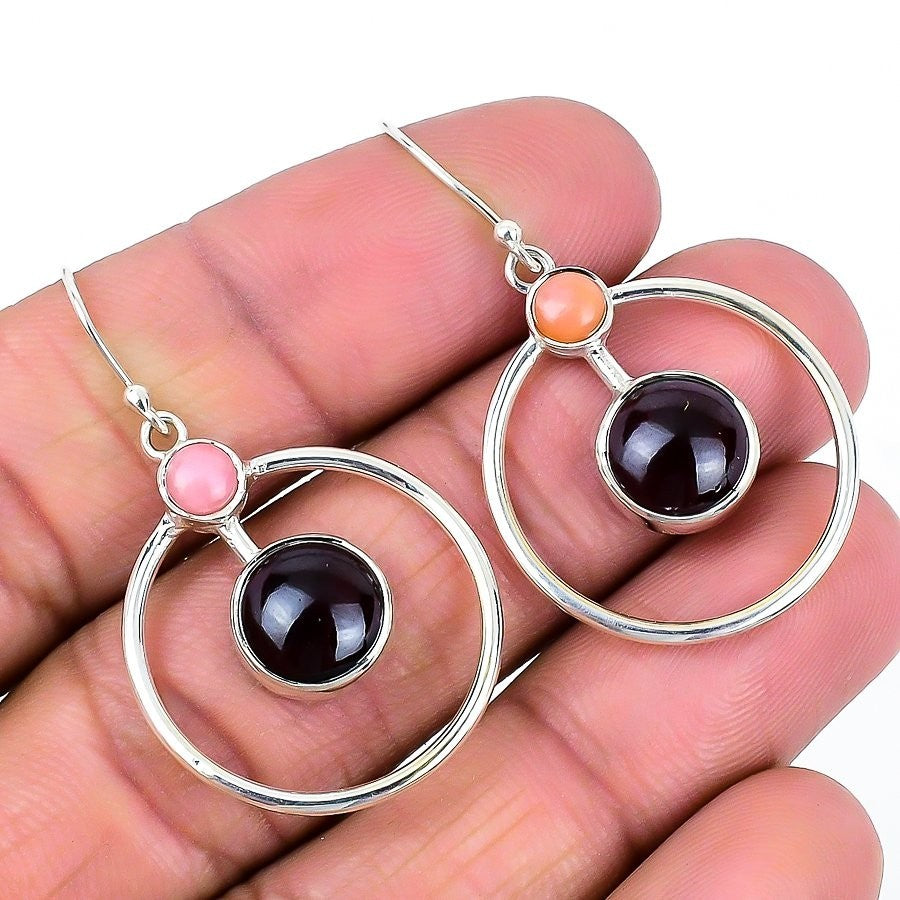 Pink Opal Gemstone Solid Sterling Silver Wife Drop Dangle Birthday Hook Earrings