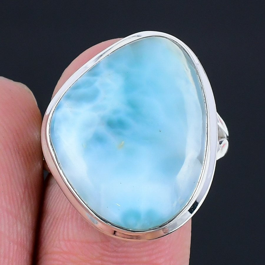 Republic Larimar Gemstone Solid Silver Elegant Statement Wife Ring Jewelry US 8
