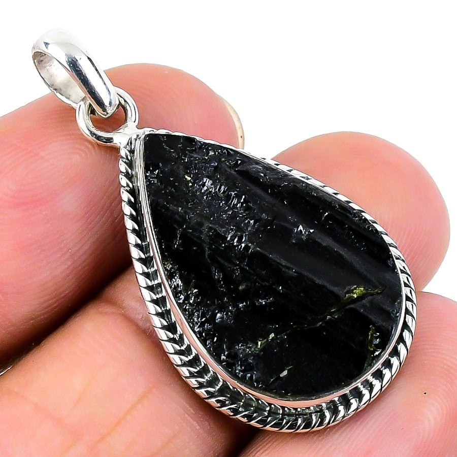 Throat Chakra Black Kyanite Stone 925 Silver Wife Elegant Daughters Day Pendant