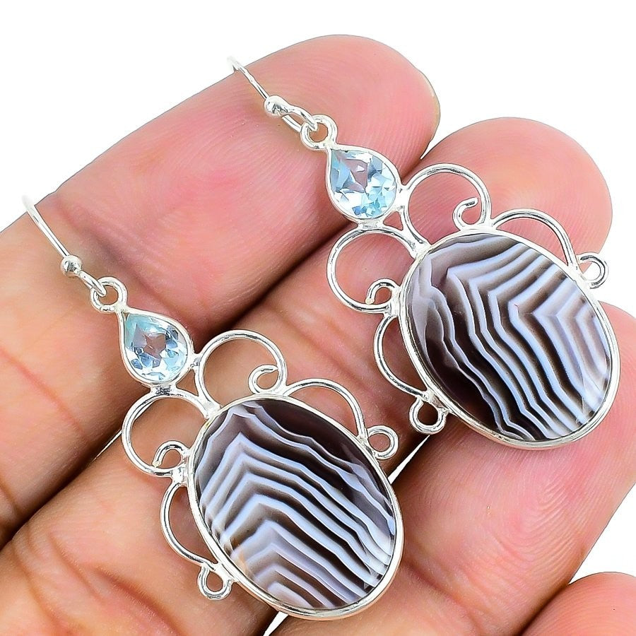 Banded Agate Stone 925 Sterling Silver Hook Bezel New Dangling Earrings Jewelry