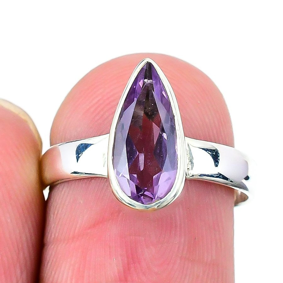 Natural Amethyst 925 Sterling Silver February Birth Statement Sister Ring Size 7