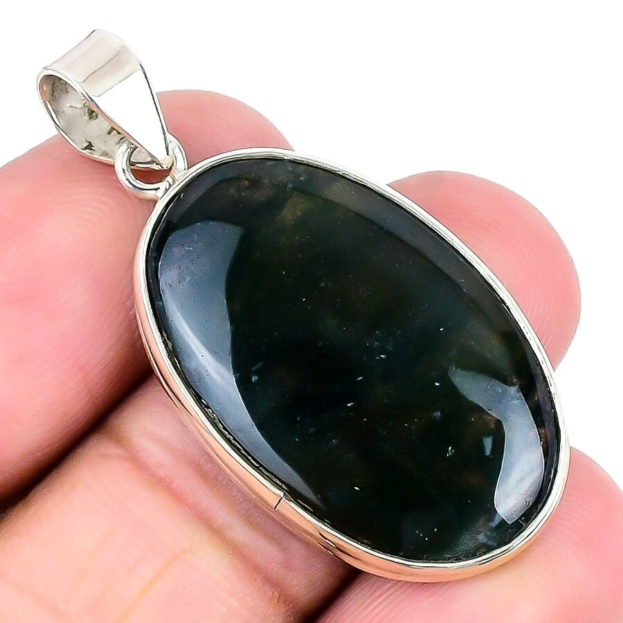 Natural Indian Moss Agate Solid Sterling Silver Daughter Mothers Gift Pendant