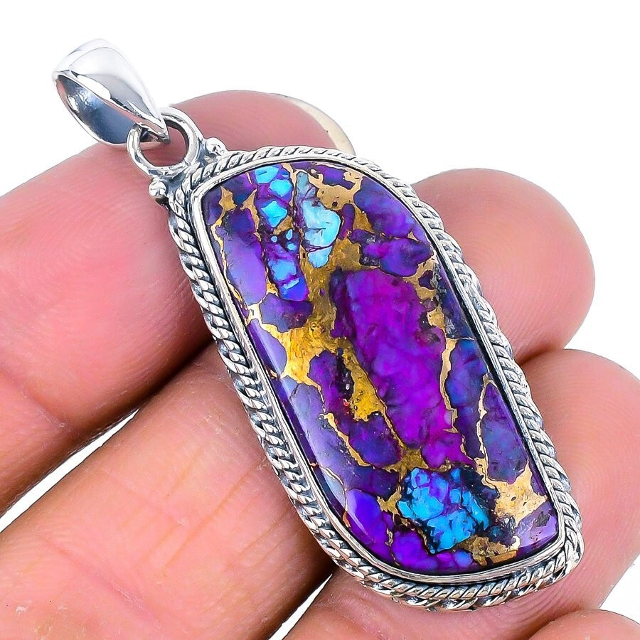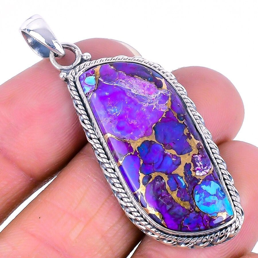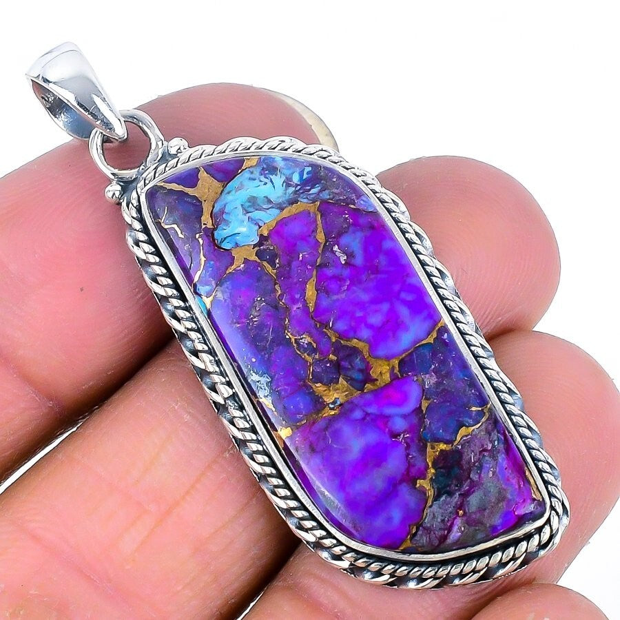 Copper Purple Turquoise Stone 925 Silver Mothers day Anniversary Wedding Pendant