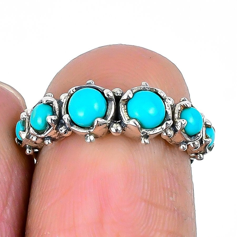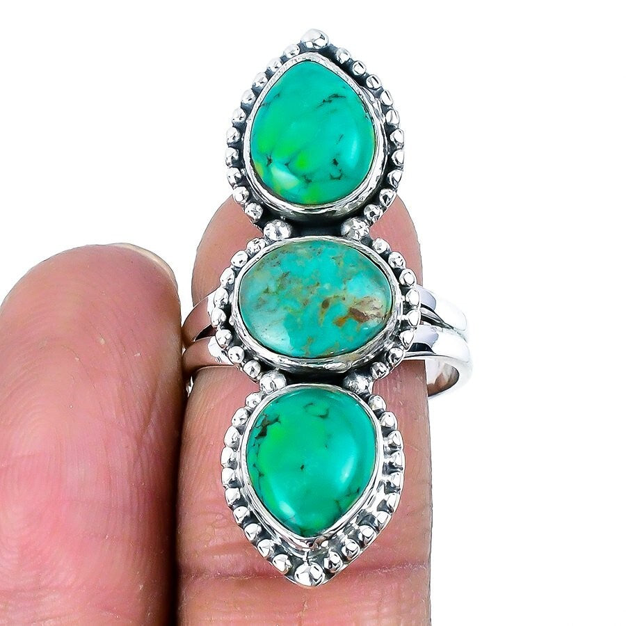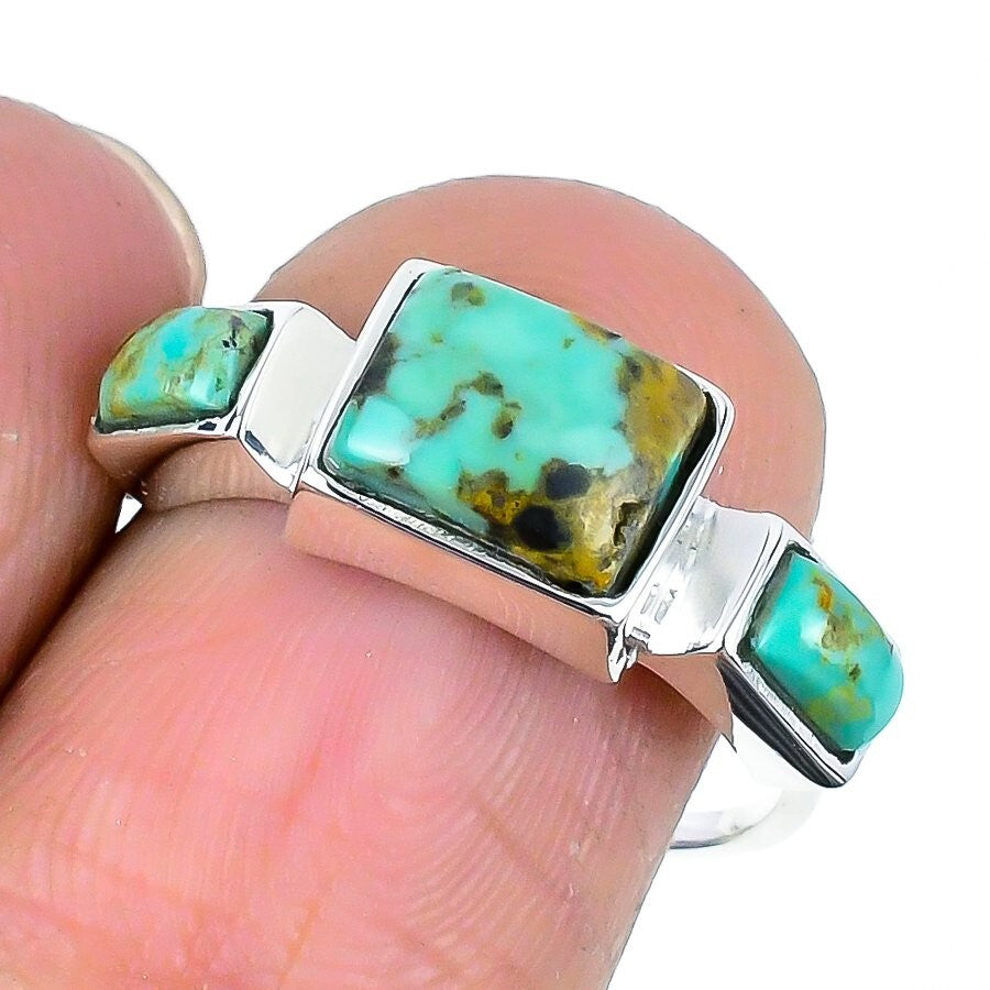 Natural Turquoise Wedding Statement Daughter Ring Jewelry Sterling Silver US 6.5