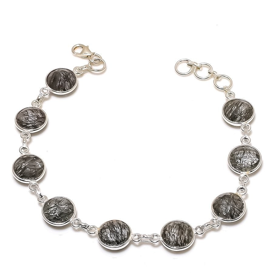 Natural Black Rutile 925 Sterling Silver Mother Chain Wedding Bracelet Jewelry