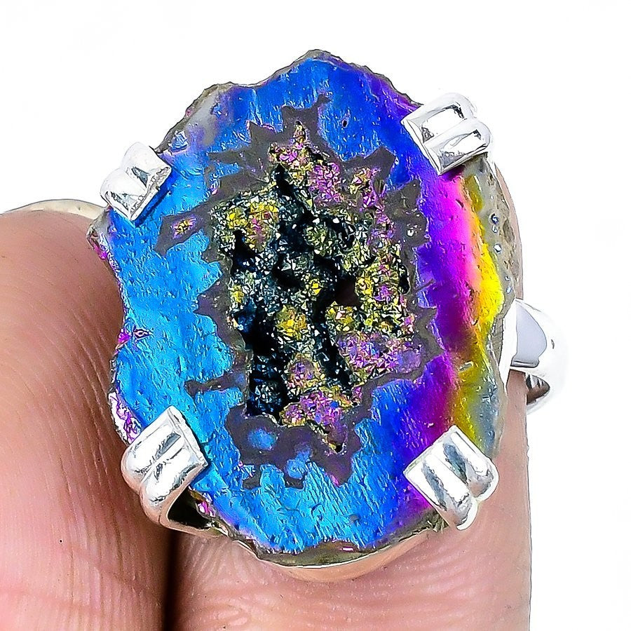 Titanium Druzy Gemstone 925 Sterling Silver Statement Daughter Gift Ring US 7