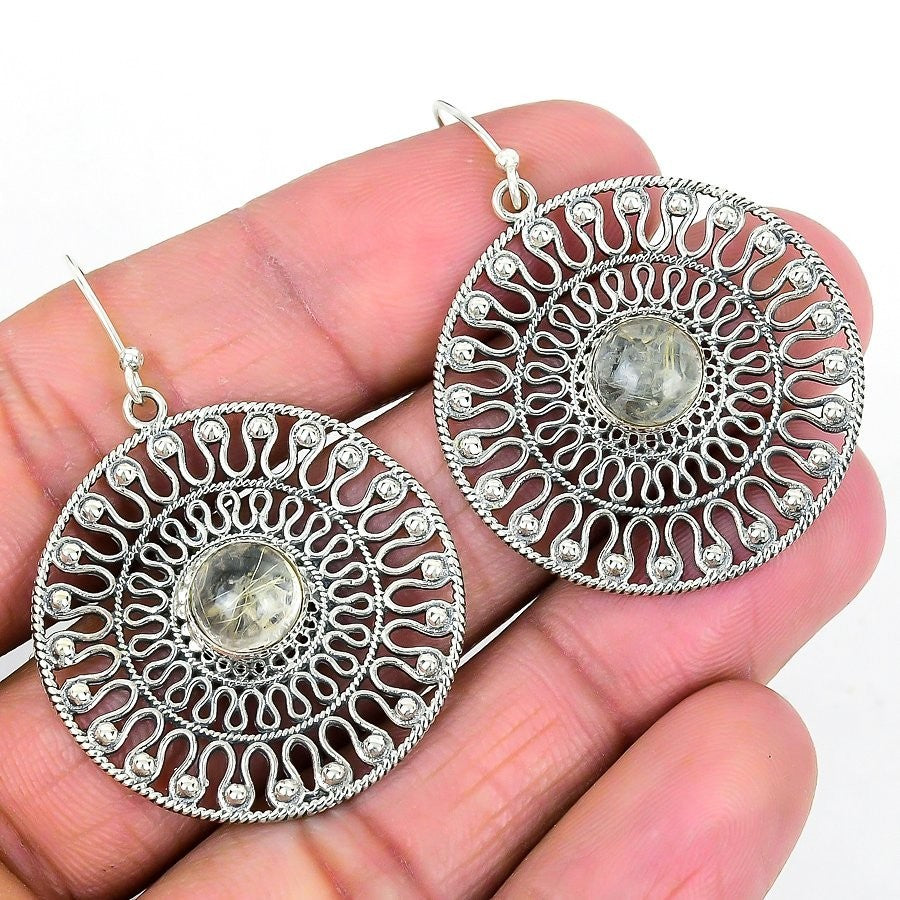 Natural Golden Rutile Mother Dangle Daughters Day Earrings Jewelry 925 Silver