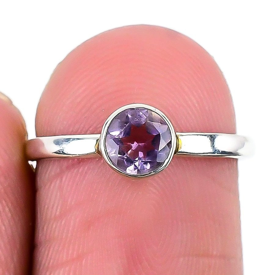 Natural Amethyst Solid Silver February Birth Statement Wedding Ring Jewelry US 6