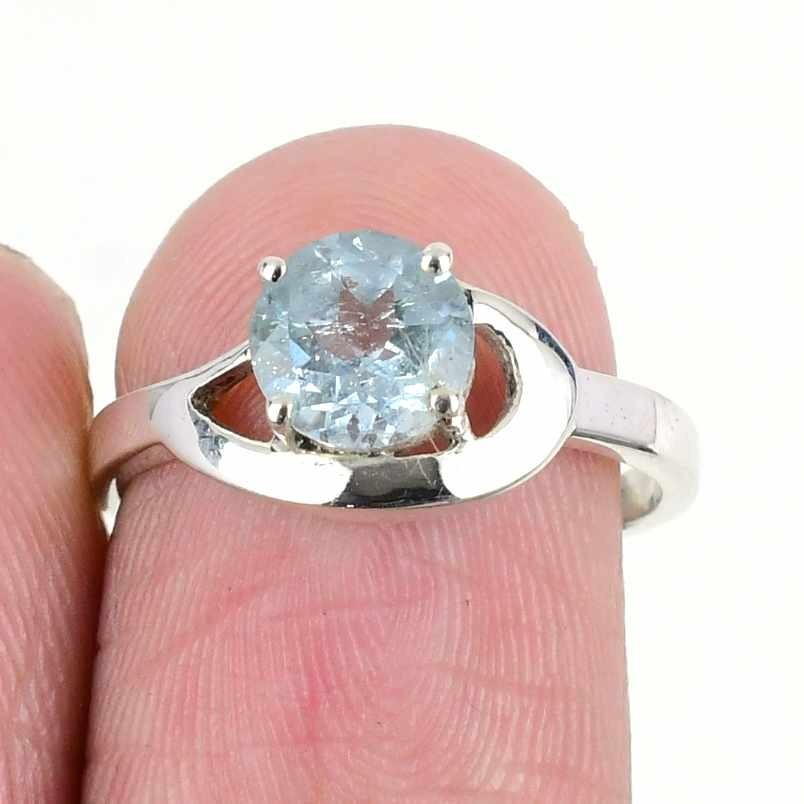 Aquamarine Gemstone Solid Silver Wedding Statement Mother Ring Jewelry US 6.5