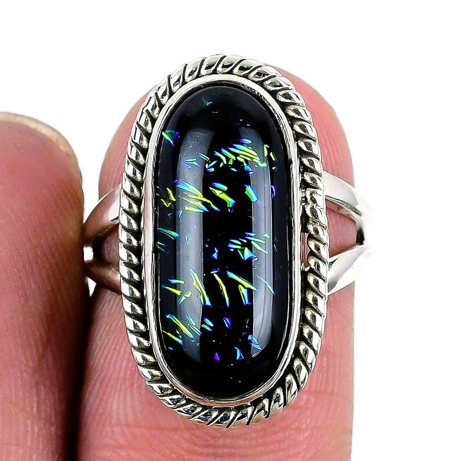 Natural Mexican Dico Glass Statement New Ring Jewelry Solid Sterling Silver US 6