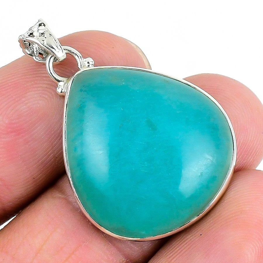 Amazonite Gemstone Solid Sterling Silver Mother Bezel Ethnic New Pendant Jewelry