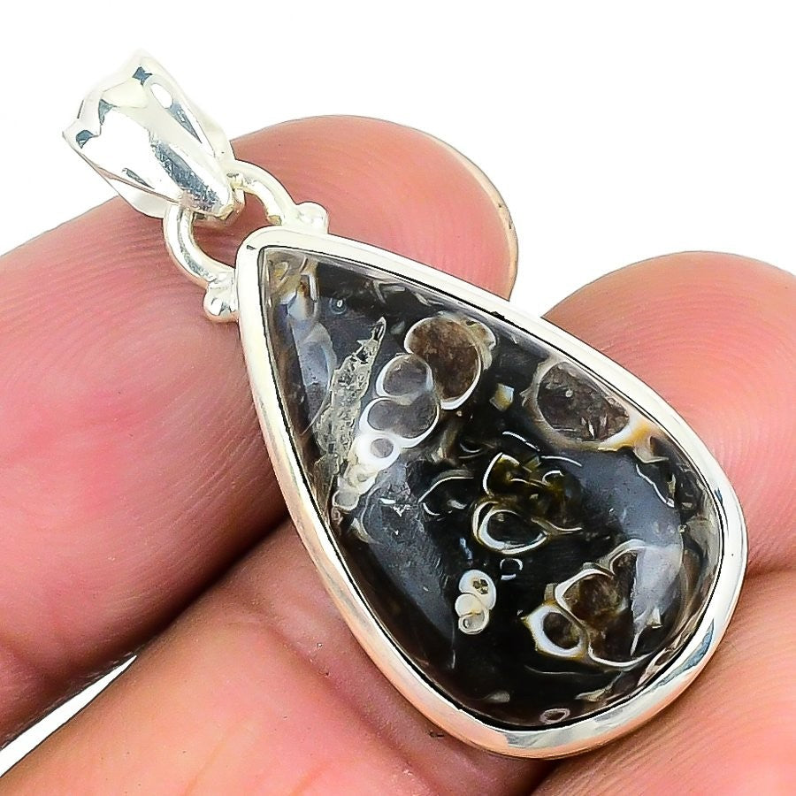 Turtilla Fossil Stone Sterling Silver Anniversary Art Deco Sister Boho Pendant