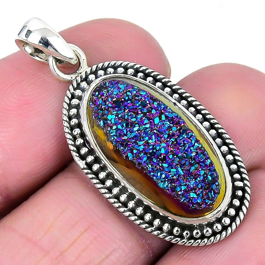 Natural titanium druzy Solid Silver Wedding Engagement Birthday Pendant Jewelry