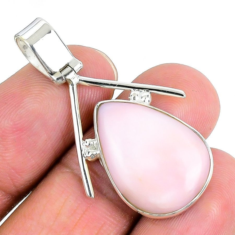 Pink Opal Stone Solid Silver Daughter Bezel Handmade Handcrafted Pendant Jewelry