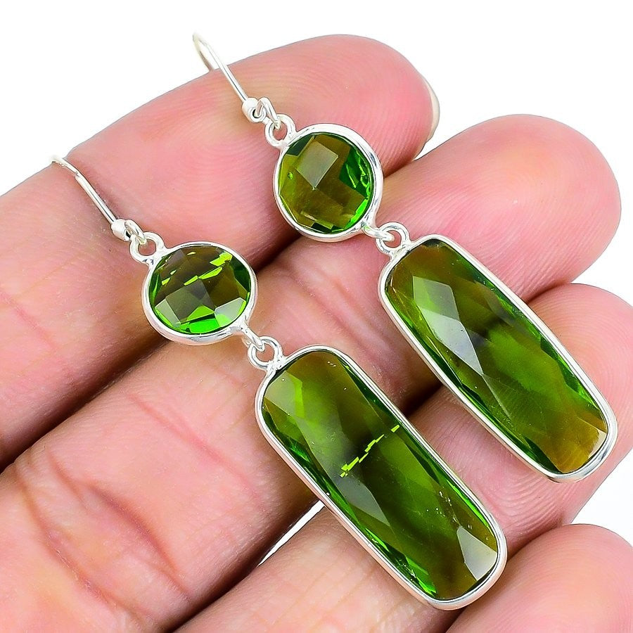 Peridot Treated Glass Gemstone 925 Silver Unique Drop Hook Daughter New Earrings