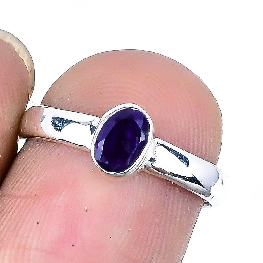 Crown Chakra Amethyst Faceted Gemstone Sterling Silver Statement Wife Ring US 7