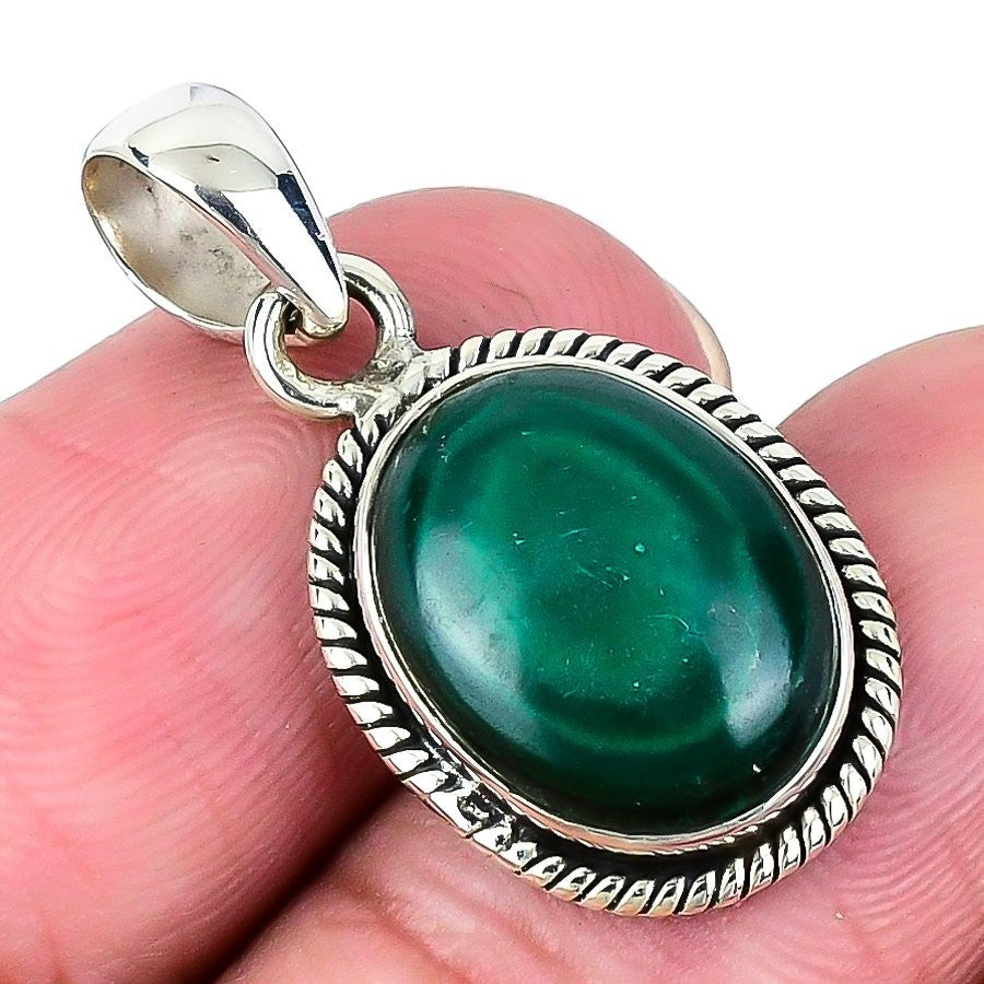 Daughters Day Sale Natural Malachite 925 Sterling Silver Mother Art Deco Pendant