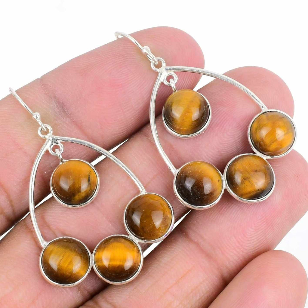 Tiger Eye Stone 925 Silver Birthday Dangle Daughters Day Hook Earrings Jewelry