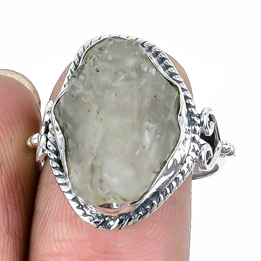 Natural Moldavite Sterling Silver Statement Elegant Birthday Unique Ring Jewelry