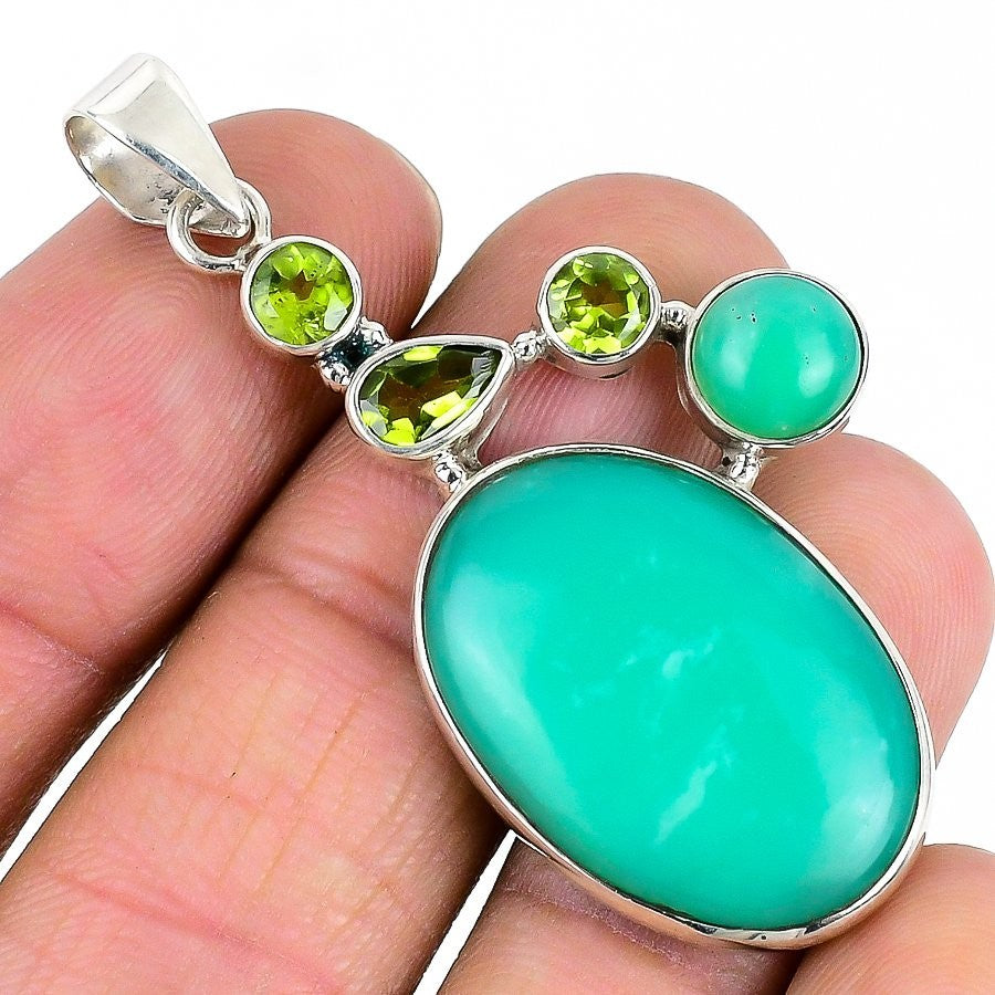 Heart Chakra Natural Chrysoprase Sterling Silver Wife Artisan Pendant Jewelry