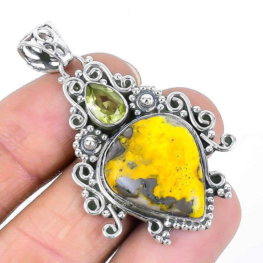 Bumble Bee Jasper Gemstone 925 Solid Silver Birthday Artisan New Pendant Jewelry