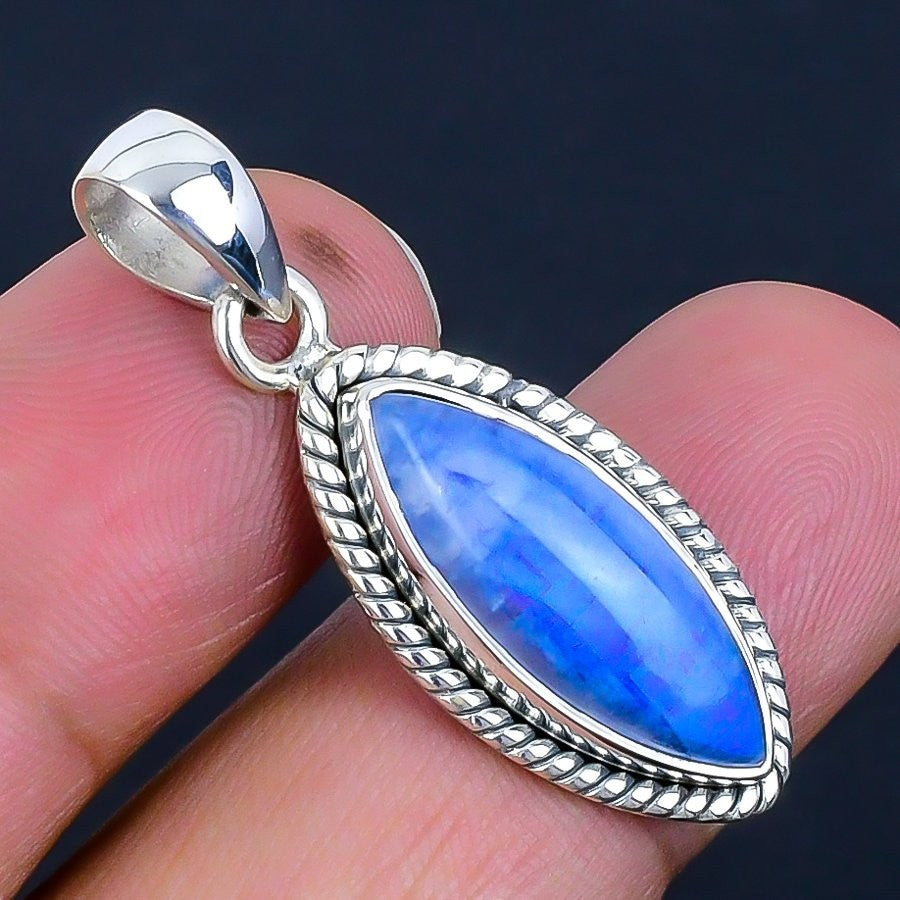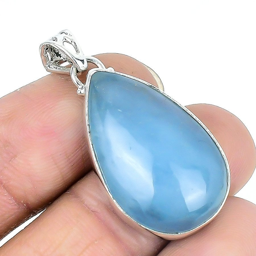 Aquamarine Stone 925 Sterling Silver Wedding Engagement Artisan Pendant Jewelry