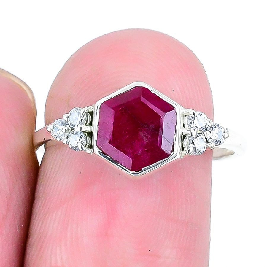 Pink Rubillite Stone Solid Sterling Silver Ethnic New Band Promise Ring Size 7.5